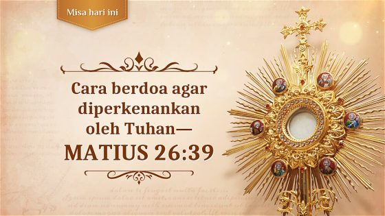 Teks Misa hari ini: Tuhan Yesus berkata: 'Oh, Bapa-Ku, jikalau mungkin, biarlah cawan ini lalu daripada-Ku: tetapi bukan seperti yang Aku kehendaki, melainkan seperti kehendak-Mu' (Matius 26:39). I...